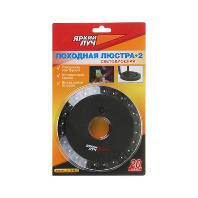 Фонарь ЯРКИЙ ЛУЧ LT-2406-2 "Походная люстра 2" плоский круглый, 24 светодиода, металл. крюк, на 4xAA Яркий луч 4606400102403