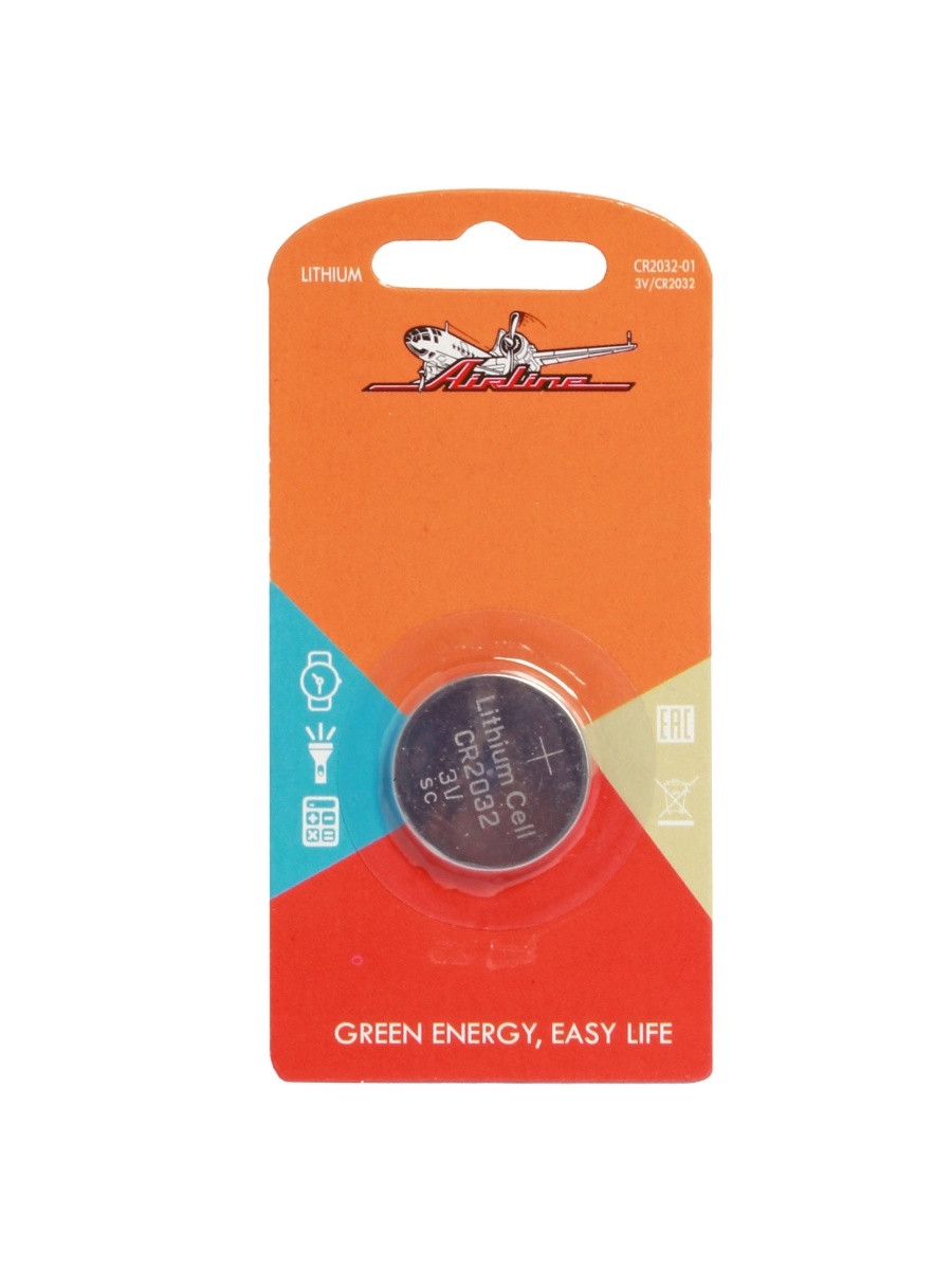 Батарейка AIRLINE литиевая CR2032 дисковая 3V (цена за 1 батарейку) бл/1 Airline CR2032-01