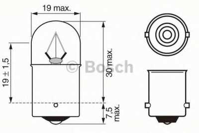 Лампа 24V R10W 10W цокольная габаритная маленькая BOSCH 1987302505