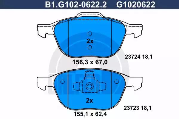 Колодки дисковые перед.MAZDA 3/5 10/03->, VOLVO S40 II/ GALFER B1-G102-0622-2