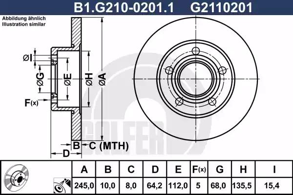 Диск торм задний.вентил [245x10] 5 отв. AUDI 100/A6, SKODA Superb, VW Passat 1.6-4.2 85-08 GALFER B1-G210-0201-1