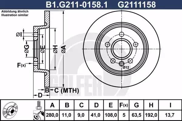 Диск торм. зад.[280x11] 5 отв. VOLVO C30/C70/S40/V50 1.6-2.0 10.03 GALFER B1-G211-0158-1