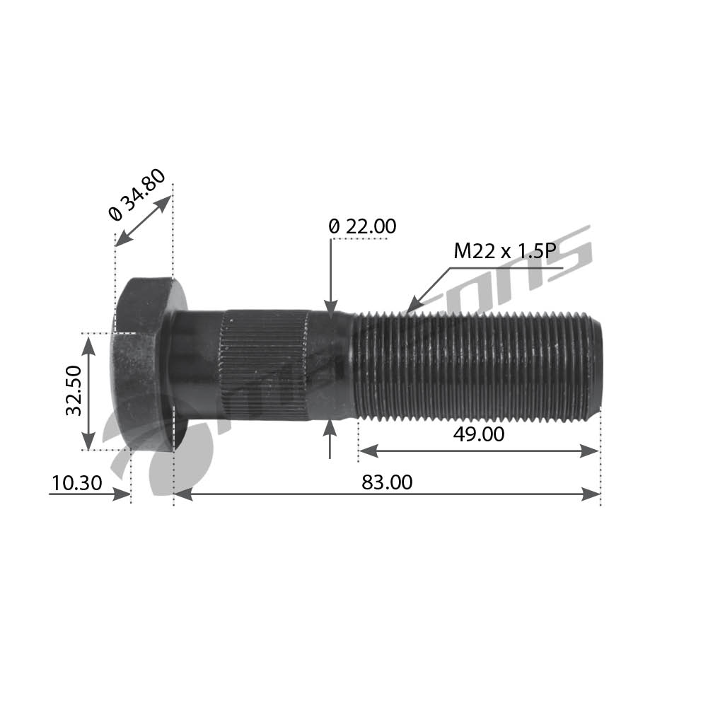 Шпилька колесная M22x1.5x83мм SAF Mansons 600077