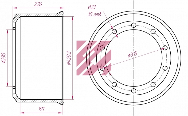Барабан тормозной 420х180(180)x228 BPW под 2-х сторонюю шпильку Marshall M1900162