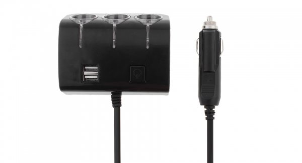 Разветвитель прикуривателя 12/24 3 гнезда +2USB+переключатель Olesson 1506