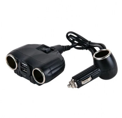 Разветвитель прикуривателя 1630 на 3 прикуриватель, 2 USB выхода(12V/24V) кнопка on/off цвет: черный Olesson