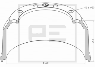 Барабан тормозной 420x192(180)x253 BPW PE AUTOMOTIVE 046.615-00А