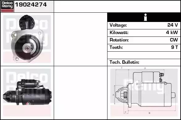 Стартер 24V 4kW, 2/3/4 Series, Bus Remy 19024274