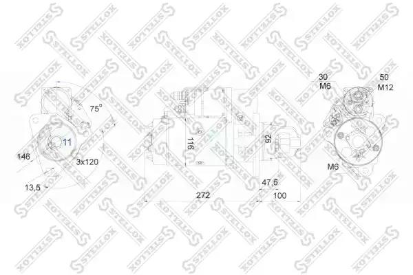 Cтартер 24V 6,2kW z11 z=11 75'вправо\ MB Actros 04.96 STELLOX 88-02030-SX