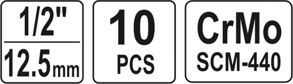 Набор торцевых ударных головок 1/2 10 пр. 10-22мм Yato YT-1025